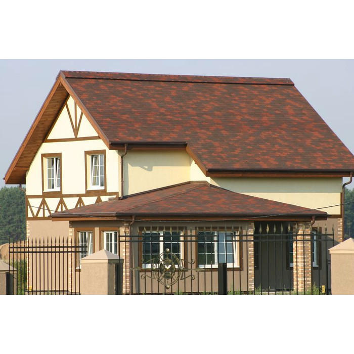 Изготавливается этот материал на основе АПП-битума, который по устойчивости к действию ультрафиолета в несколько раз превосходит СБС-модифицированный битум. Кровля, покрытая этим материалом, может эксплуатироваться при температуре от -50ºС до +50ºС. В ассортименте этой торговой марки более 47 моделей черепицы, каждая из которых имеет свой оригинальный стиль. Он подходит для использования практически в любых климатических условиях. Гарантия на него составляет 50 лет.