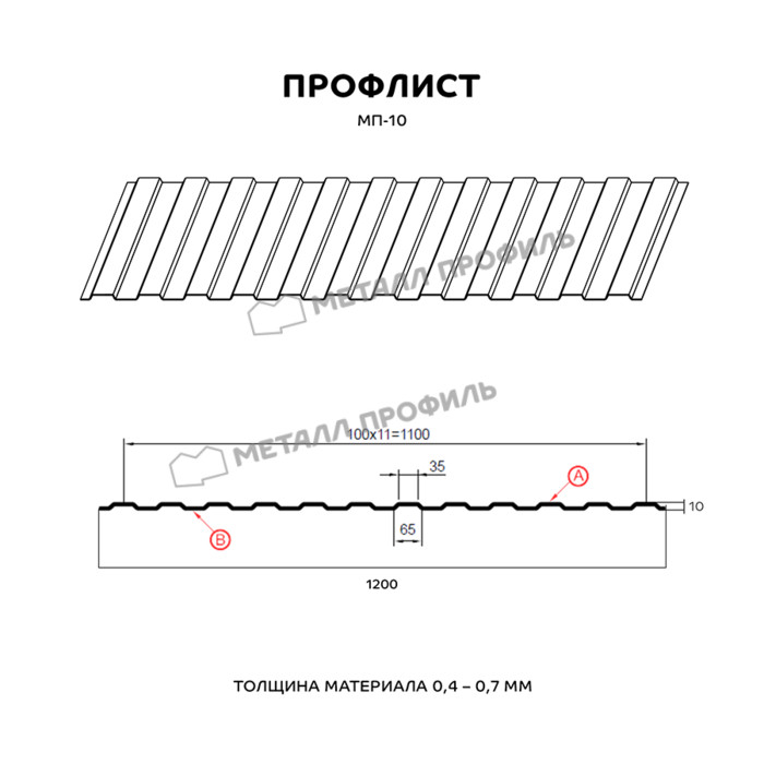 Профлист Металл Профиль МП-10 0.35 и менее Цинк Бесцветный | A Показать информацию